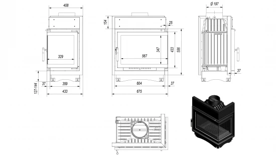 Eck-Kamineinsatz Kratki MAJA/P/BS mit Seitenglas rechts – 8kW