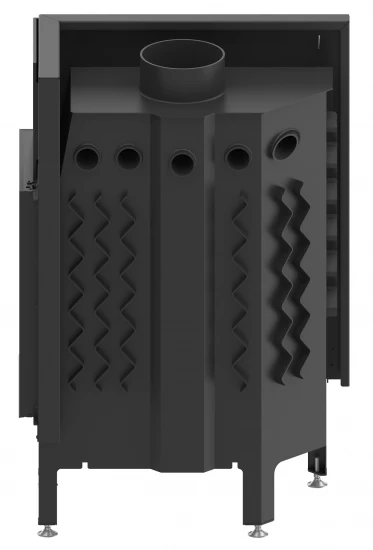 – Kaminkörper (zusätzlich verstärkt mit Rippen) und Kaminfront aus massivem Kesselstahl