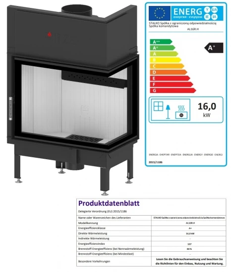 Dieser robuste Kamineinsatz erfüllt auf Grund seiner zukunftsweisenden Konstruktion die erforderlichen BIMSCHV-Emissionswerte für Deutschland (Stufe II). Der Kamin besitzt eine selbstschließende Tür (Bauart 1) und ist somit für die Mehrfachbelegung am Schornstein zugelassen.
