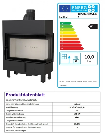 Eck-Kamineinsatz Kratki LUCY/14/SLIM/P/BS mit 10 kW
