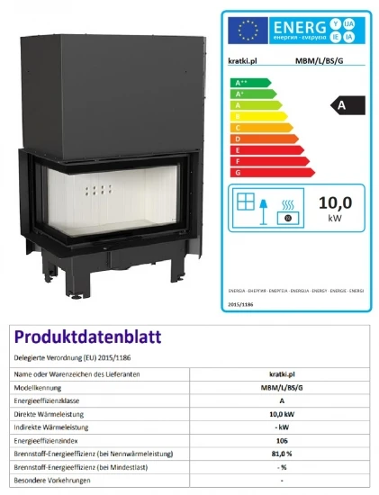 ECK-Kamineinsatz Kratki MBM 10 links BS mit Schiebetür – 10 kW