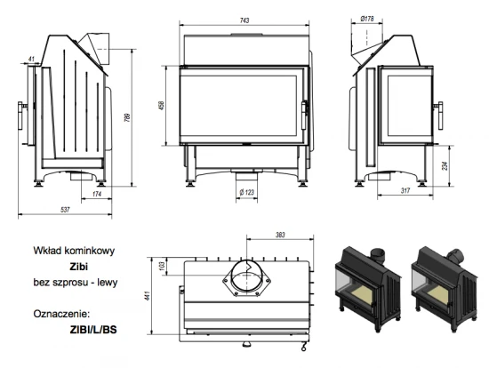 Eck-Kamineinsatz Kratki ZIBI/P/BS mit Seitenglas links