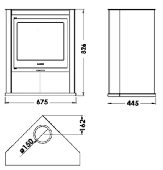 – Rauchrohranschluss: Ø 150 mm (nur oben möglich)