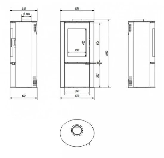 – Rauchrohranschluss: Ø 150 (oben oder hinten möglich)