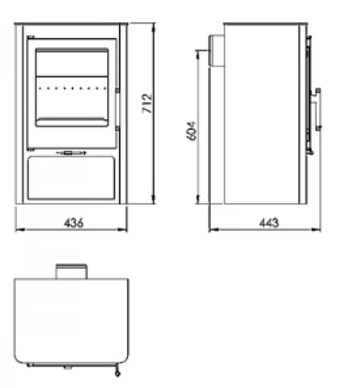– Rauchrohranschluss: Ø 150 mm (nur oben möglich)
