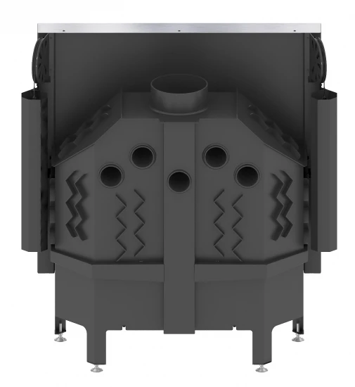 – Kaminkörper (zusätzlich verstärkt mit Rippen) und Kaminfront aus massivem Kesselstahl